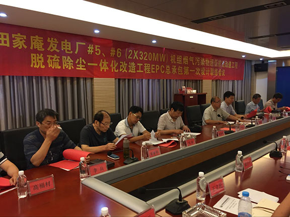 公司召开淮南田家庵发电厂#5、#6(2×320MW)机组烟气污染物超低排放改造工程脱硫脱硝除尘一体化改造工程EPC总承包第一次设计联络会议
