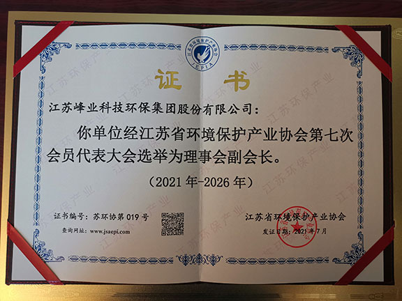 热烈祝贺江苏峰业科技环保集团股份有限公司当选江苏省环境保护产业协会第七届理事会副会长单位!