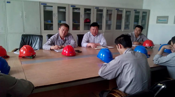 2015年6月22日,宁夏峰业环保科技有限公司召开每周安全生产例会,集团公司领导王万秋莅临参会,公司经理李志民及班长以上人员参加,针对工作中存在的问题进行沟通解决。